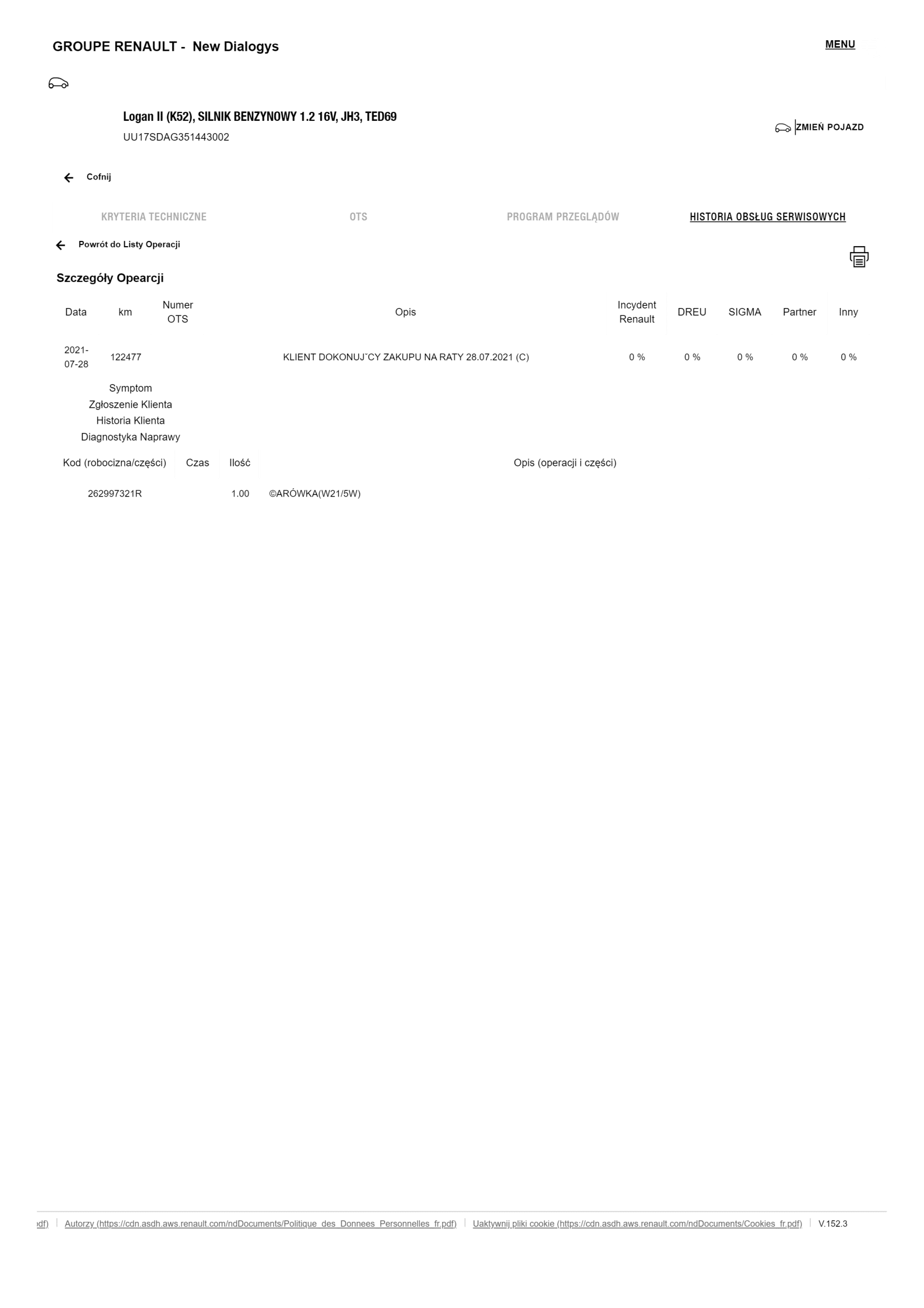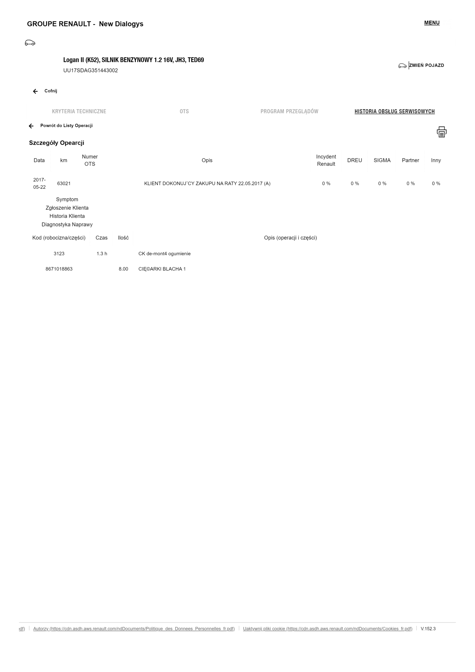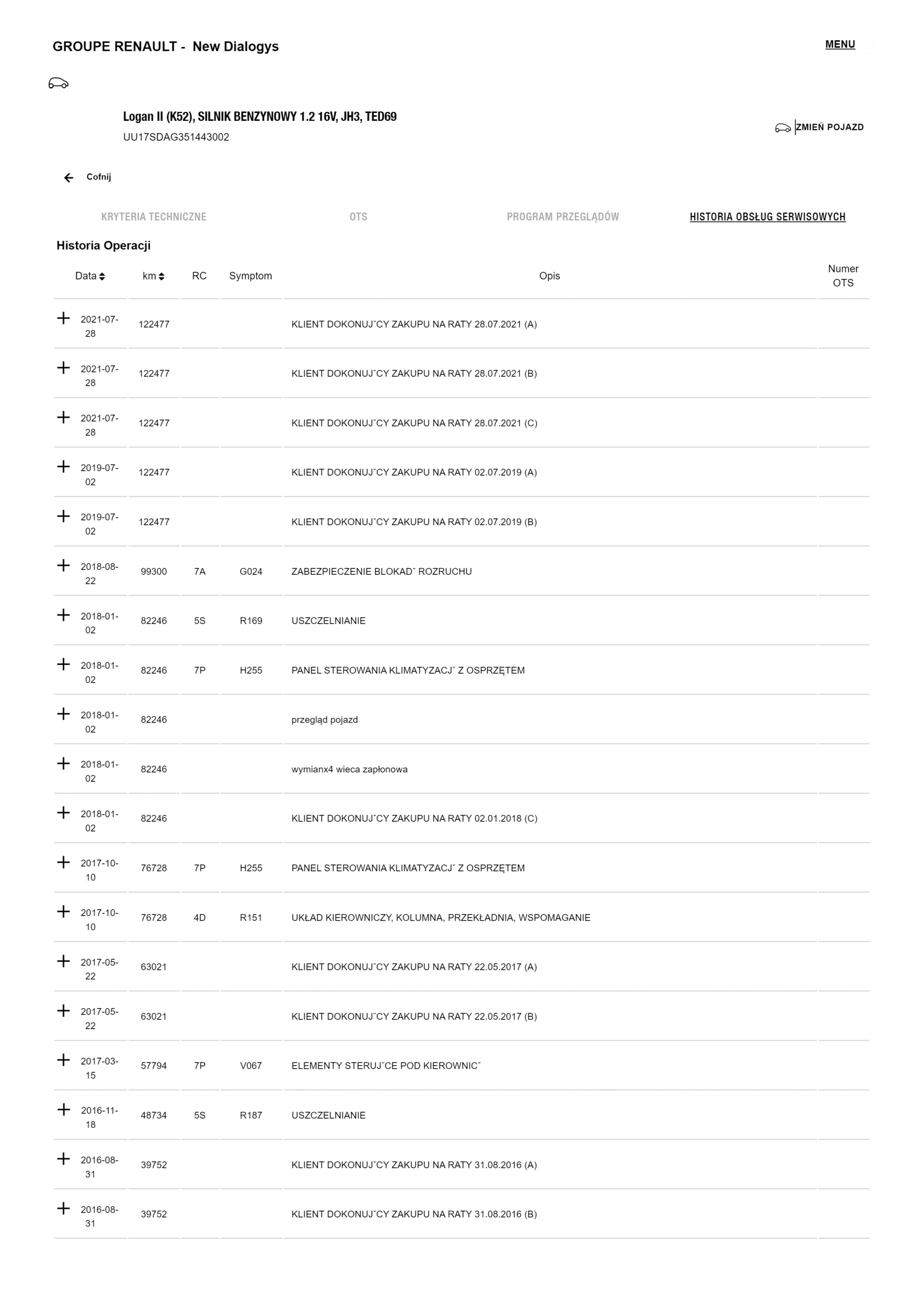 Historia serwisowa ASO Dacia