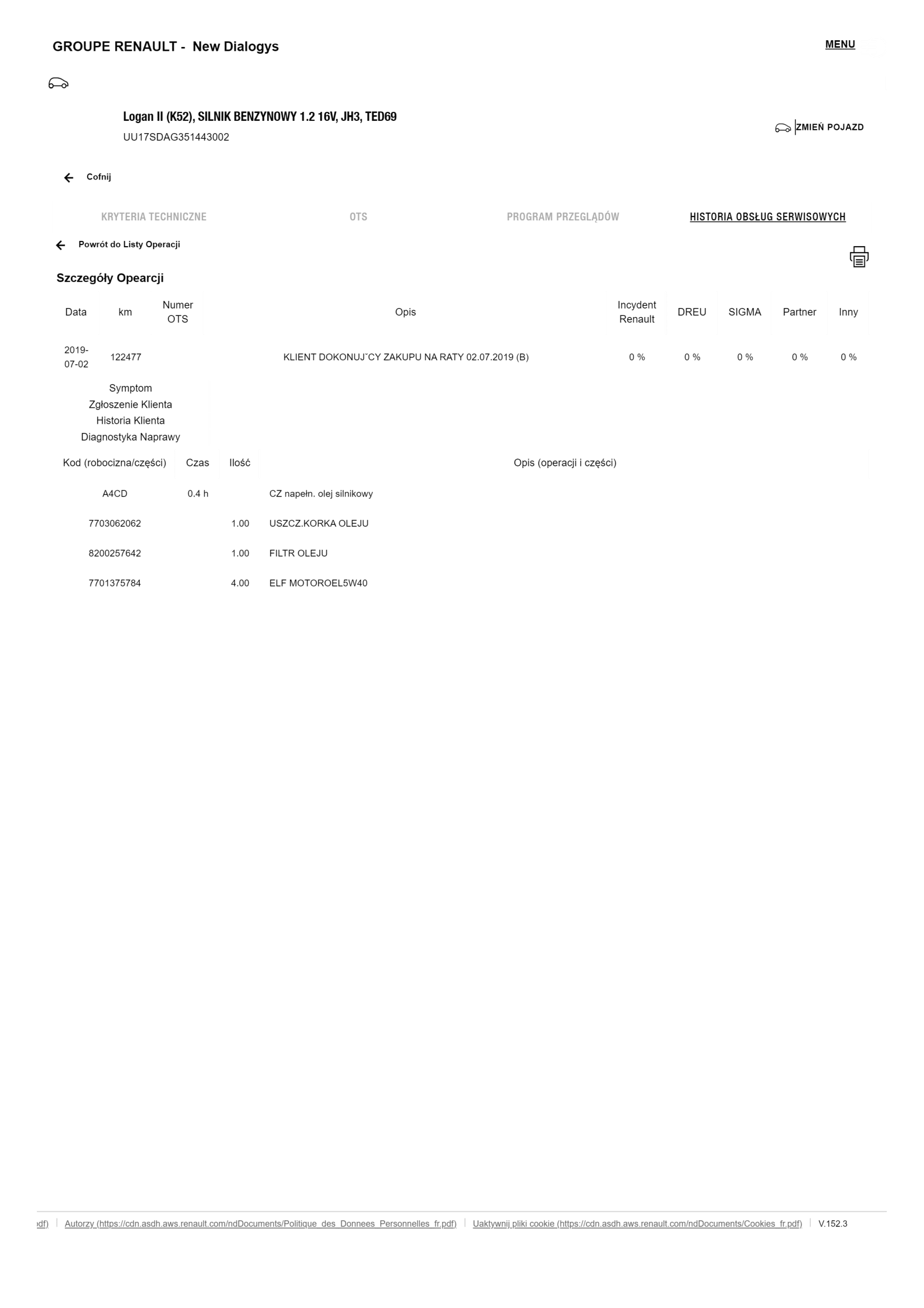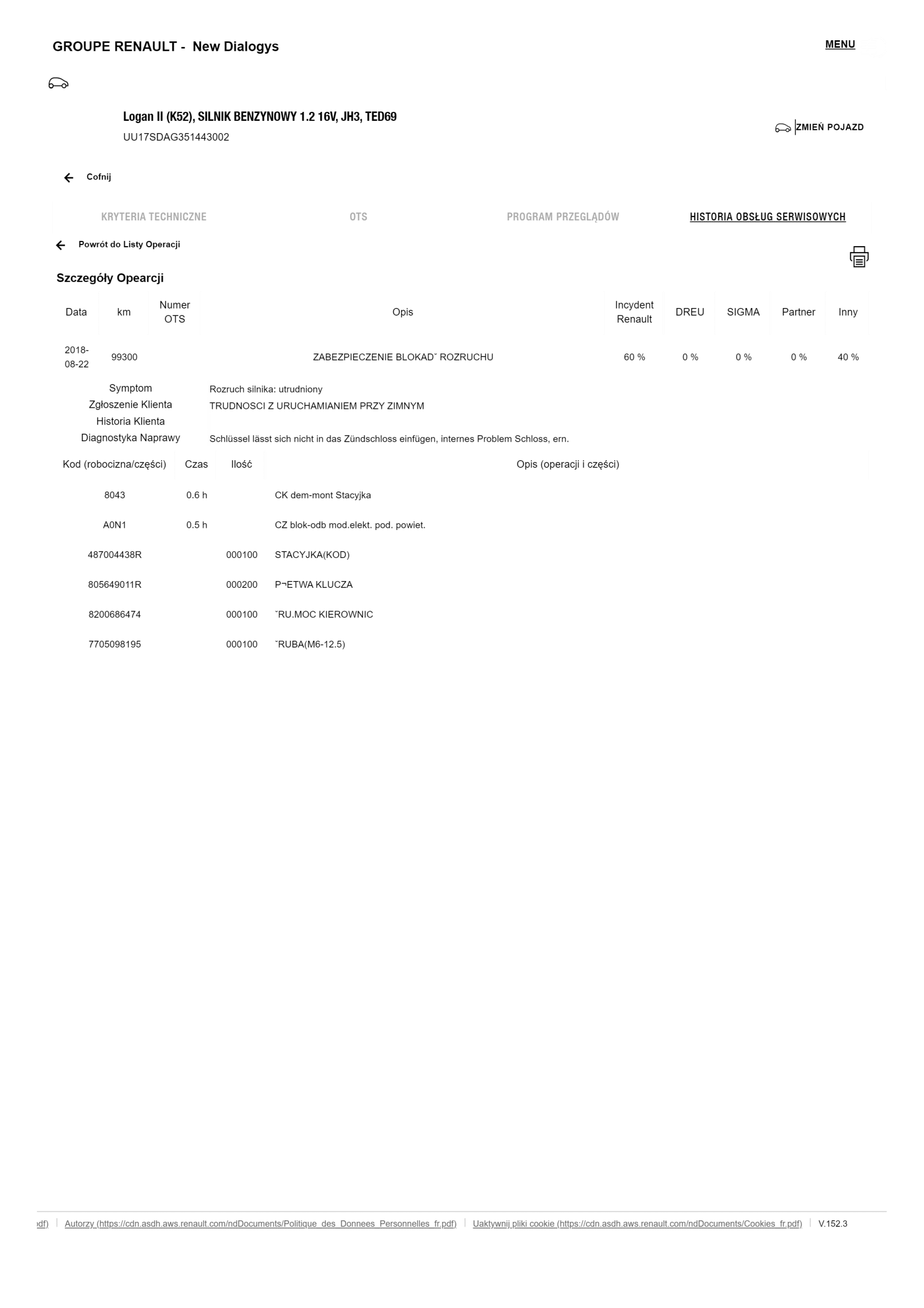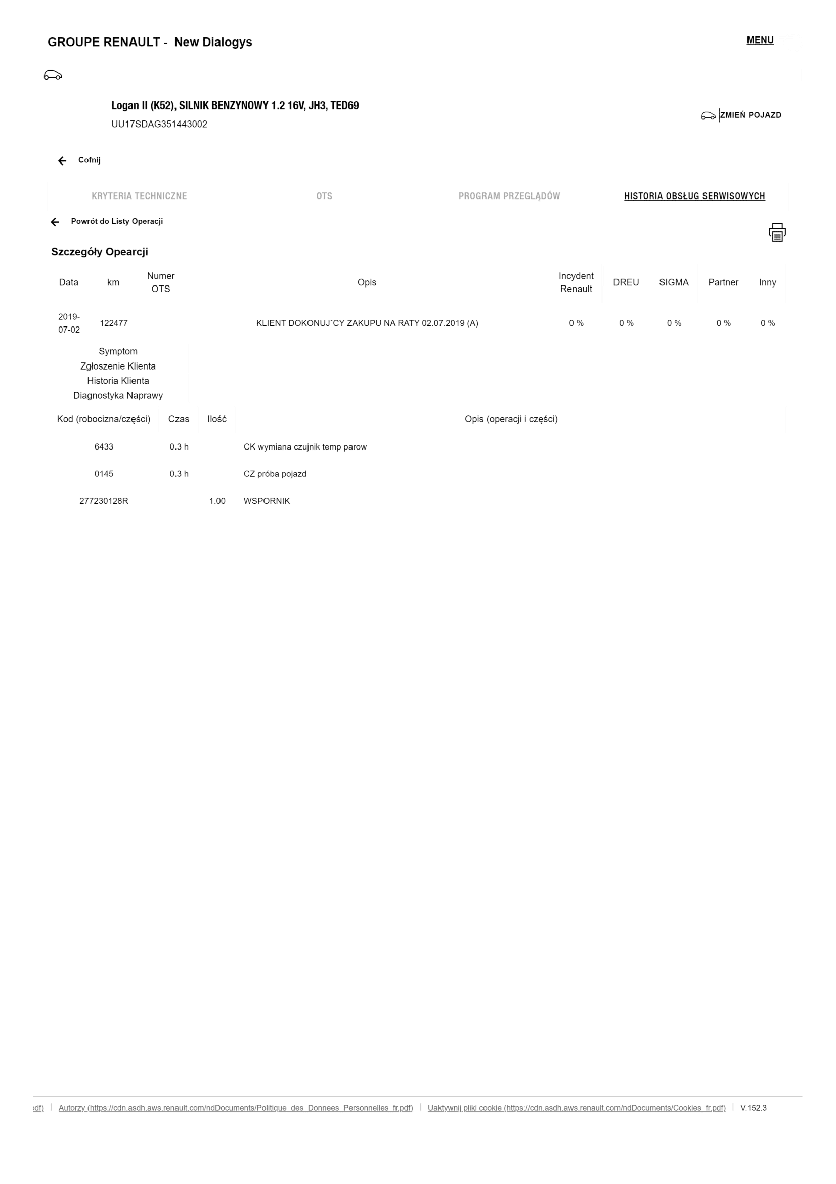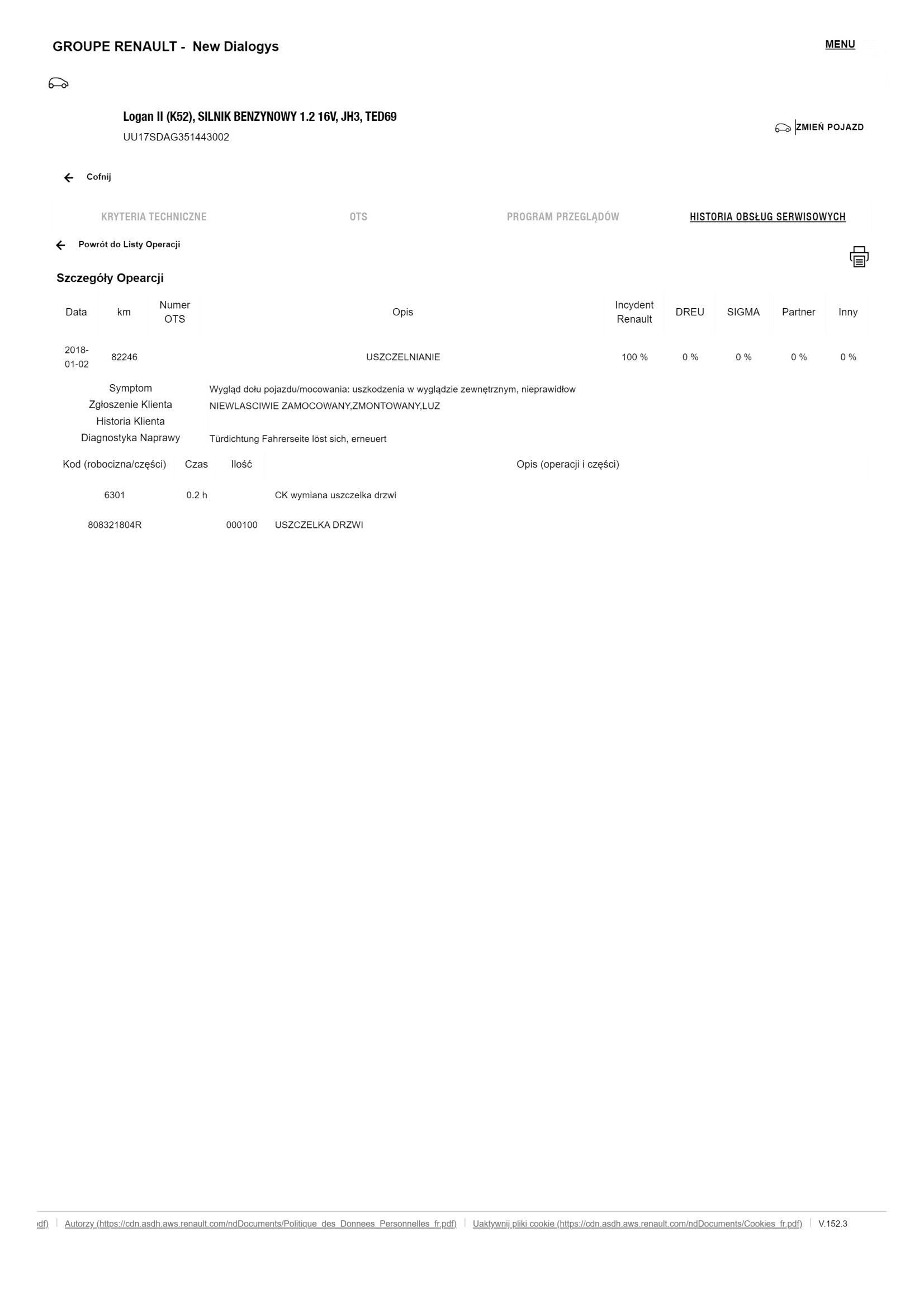 Historia serwisowa ASO Dacia