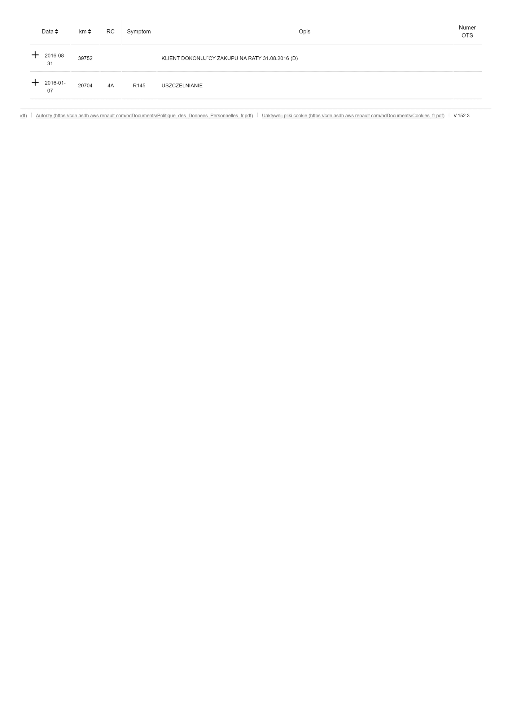 Dane z autoryzowanego systemu serwisowego