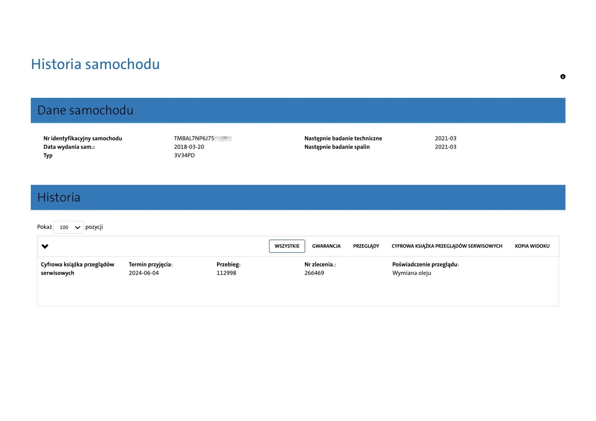 historię napraw i przeglądów w autoryzowanych serwisach,
