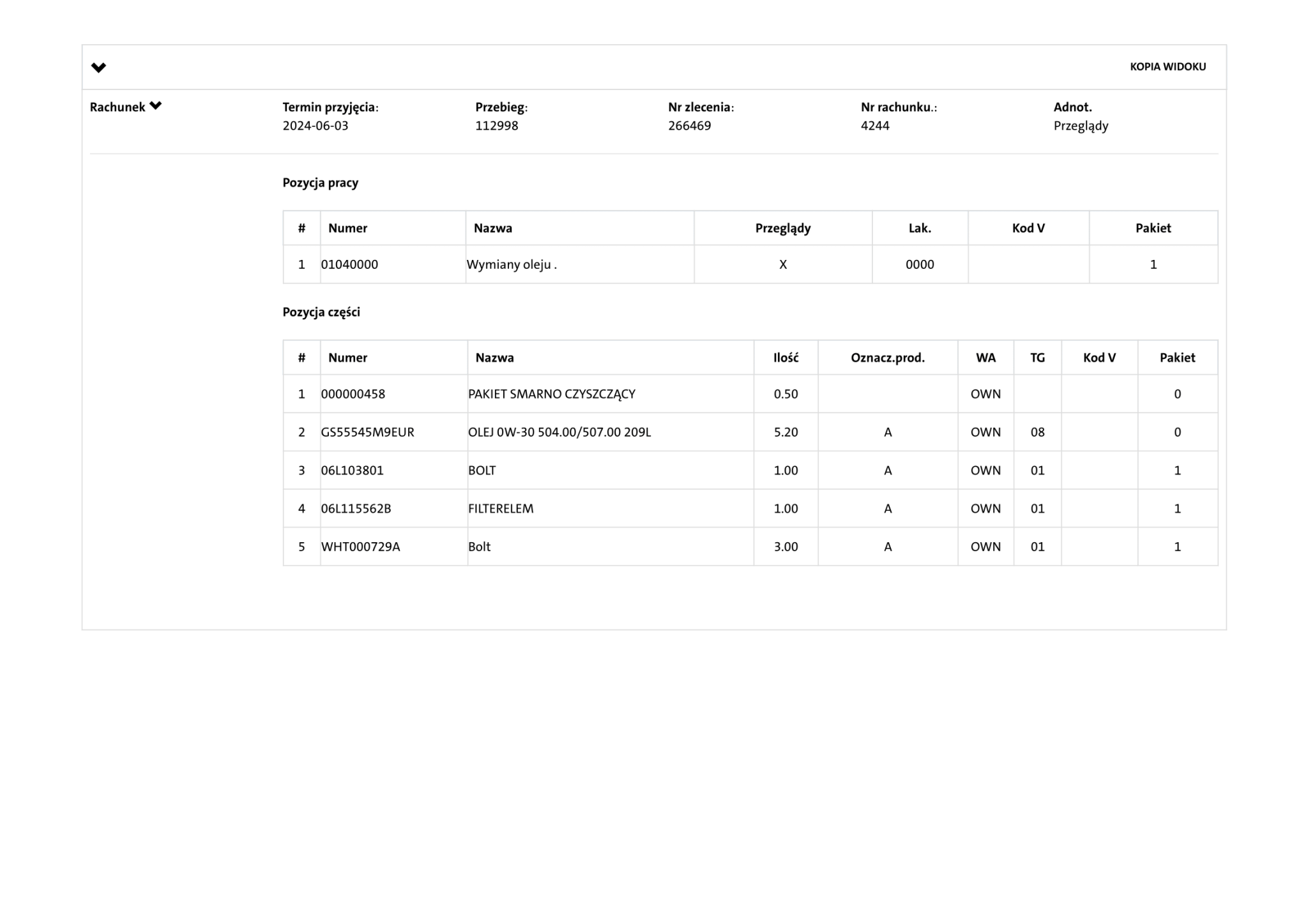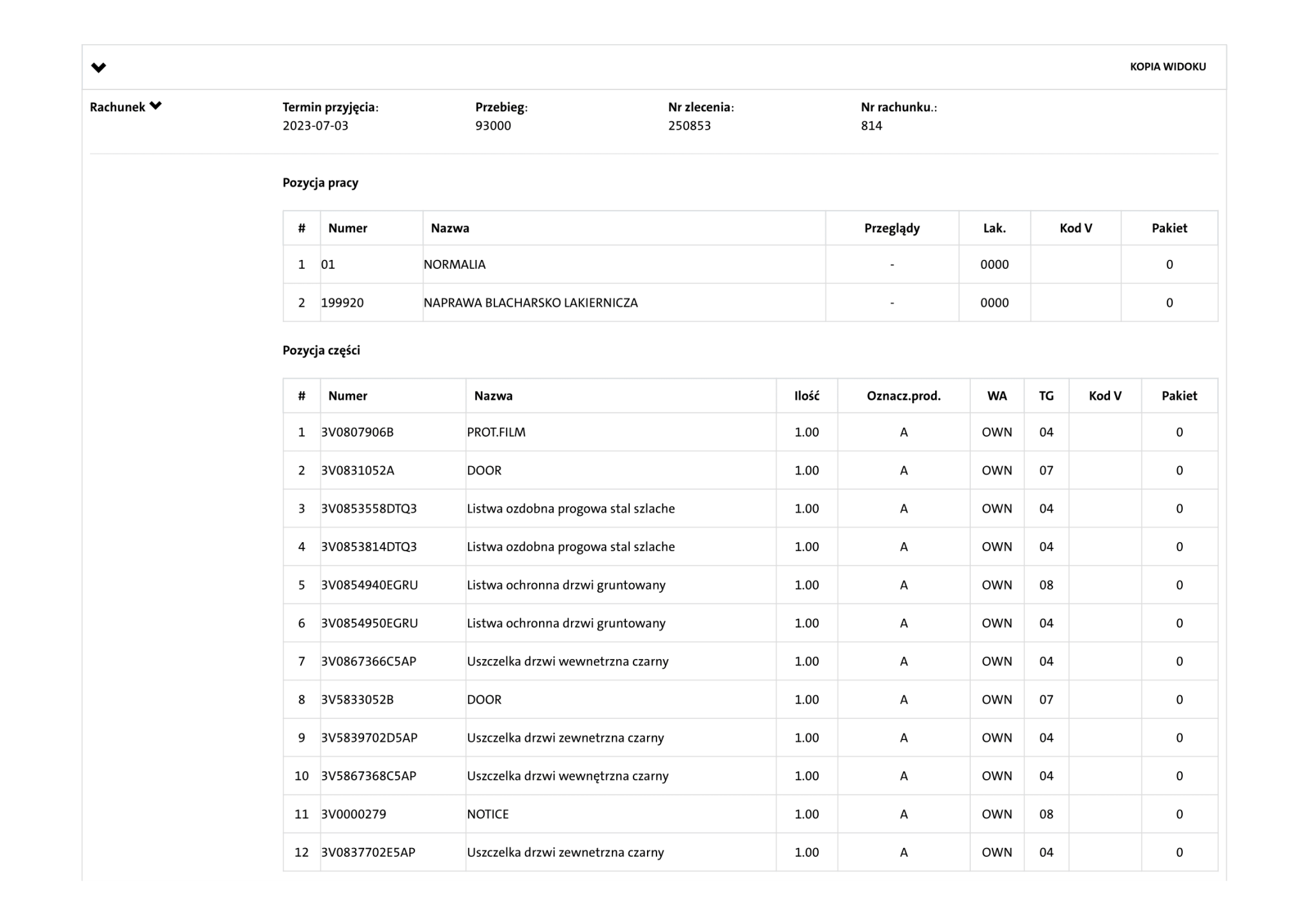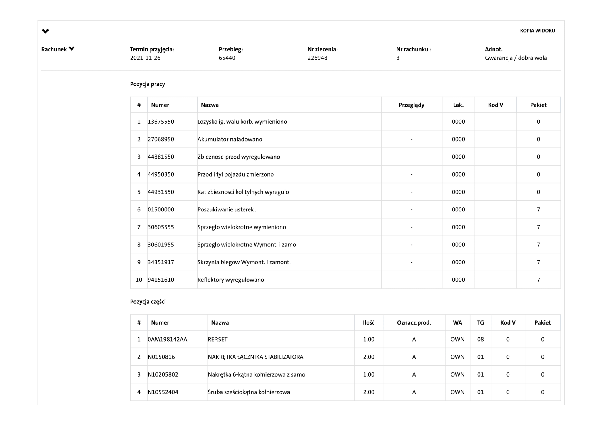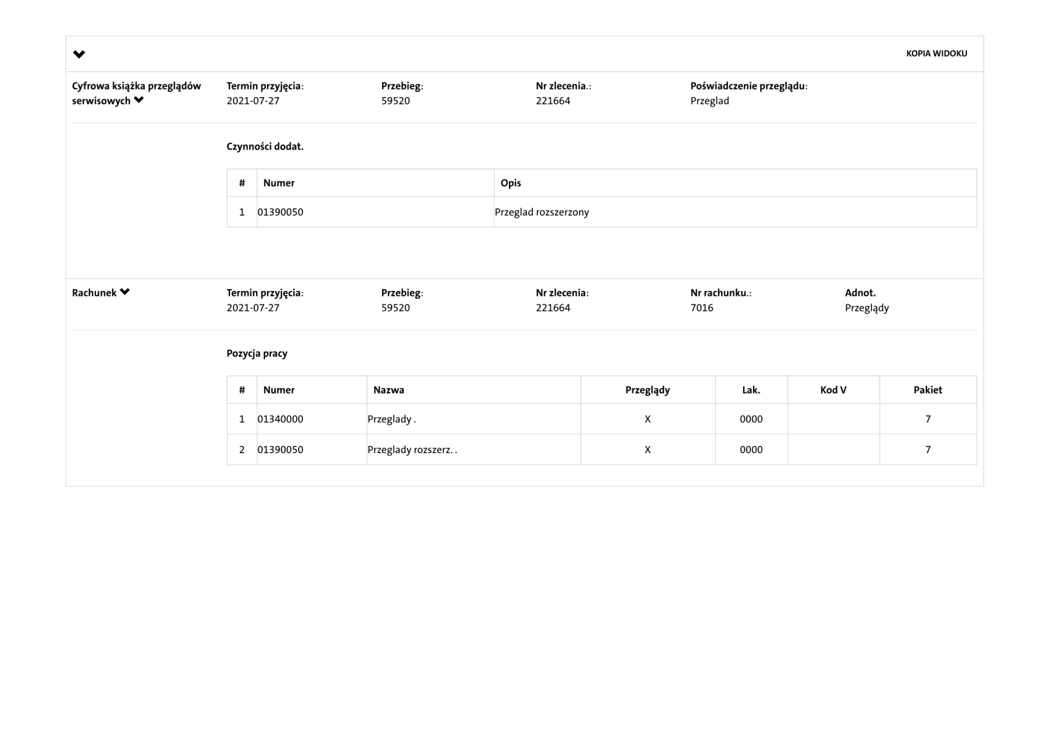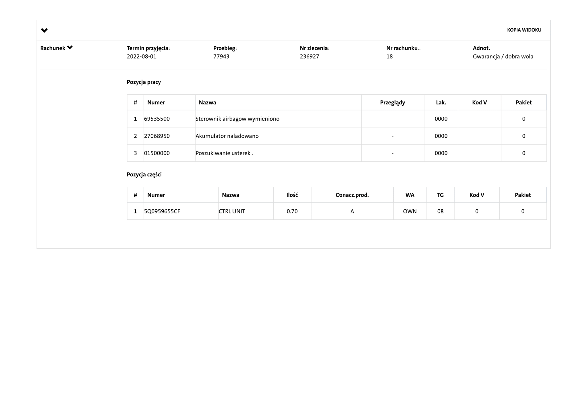Raport zawiera dokładne daty każdej wizyty w ASO wraz z odczytami licznika. Jeśli auto było serwisowane w Niemczech, Belgii czy USA, również te wpisy zostaną uwzględnione – bo ASO korzysta z jednej, globalnej bazy danych.Szczegółowe informacje o naprawach i przeglądach