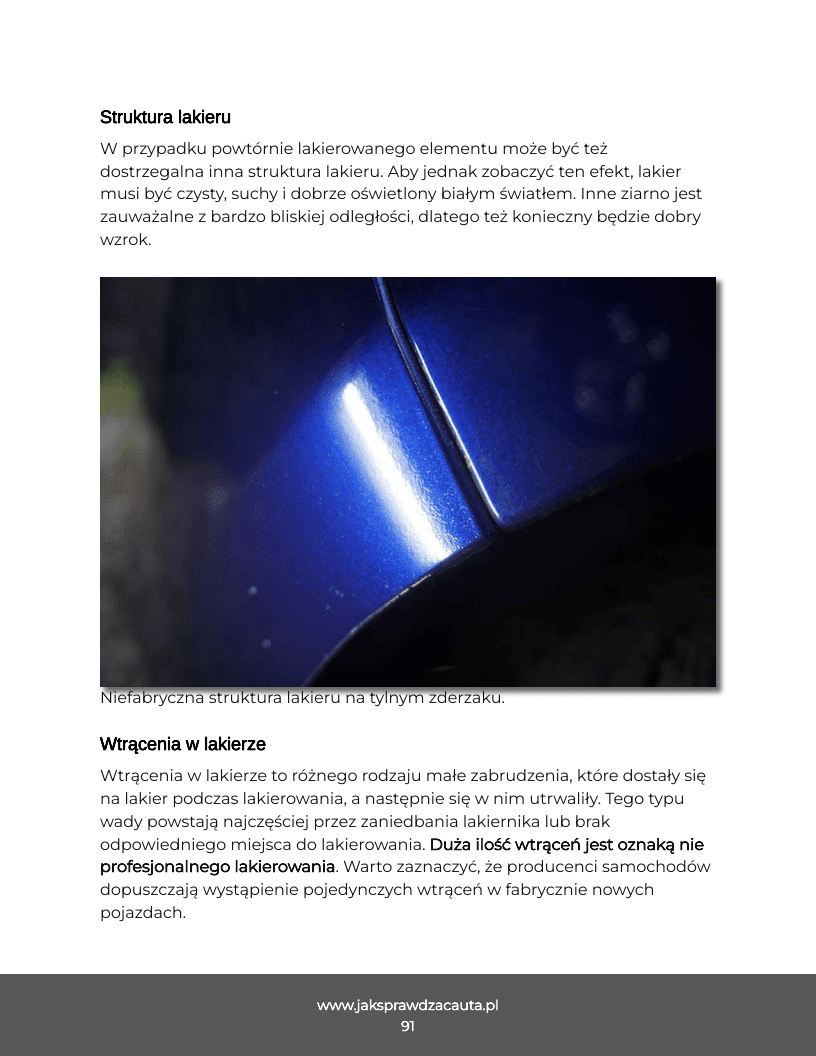 Książka pokazuje w praktyce, jak wygląda prawdziwe sprawdzenie auta krok po kroku – z przykładami, zdjęciami i opisami usterek, które można łatwo przeoczyć.